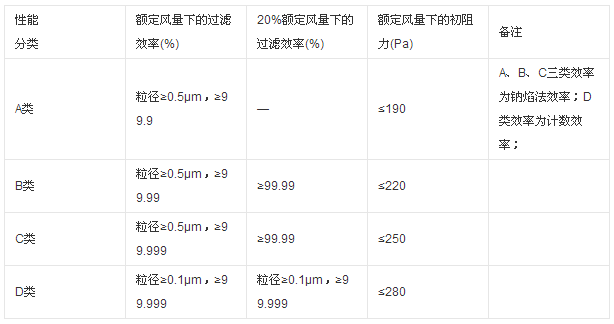 4)空氣過濾器應符合防火要求,高效空氣過濾器按耐火程度分為三級: