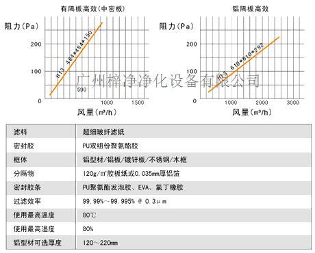 有隔板高效過濾器規(guī)格尺寸參數(shù):