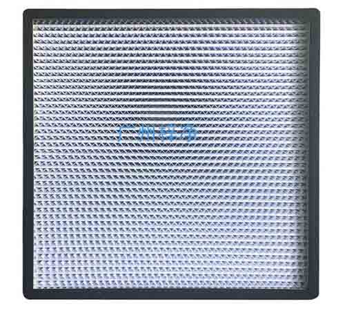 亞高效過濾器采用超細玻璃纖維濾紙或聚丙烯濾紙為濾材,經密摺而成。亞高效過濾器密摺的濾紙由紙隔板或鋁箔隔板做成的小插件間隔,保持流暢通道,外框為鍍鋅板、不銹鋼板或鋁合金型材,用新型聚氨酯密封膠密封。