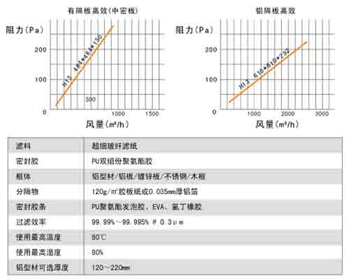 紙隔板高效過濾器風阻圖及運行條件