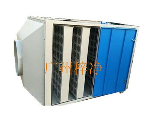 里面用角鐵打上一個(gè)一個(gè)的架子,活性炭除味箱內(nèi)放有活性炭初效過(guò)濾器,袋式中效過(guò)濾器或者活性炭過(guò)濾器,活性炭高效過(guò)濾器一般用在排風(fēng)處。
