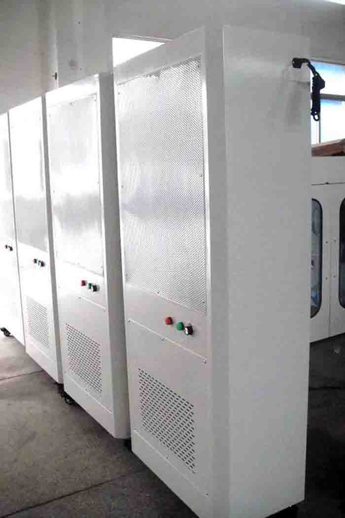 3、移動式空氣自凈器是一種提供局部潔凈工作環境的空氣凈化設備,由初效空氣過濾器、風機、高效空氣過濾器及箱體組成。外殼采用彩鋼板制作,表面烤漆處理,結構簡單、使用方便、安裝后可進行室內空氣循環,適用于1000~100000級較低潔凈度環境且工作位置經常變換的場合使用。1000~300000級較低潔凈度環境,且工作位置經常變化的場合使用,可根據需要做成移動式(立式)或吊頂式兩種自凈器。