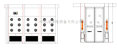 5、全自動紅外感應吹淋,進口紅外感應器,正泰中間繼電器,軟鍵觸按式時間繼電器,顯示及設置吹淋時間,范圍在0-99s可調,吹淋時雙門自動鎖閉;平常只能打開其中一扇門,