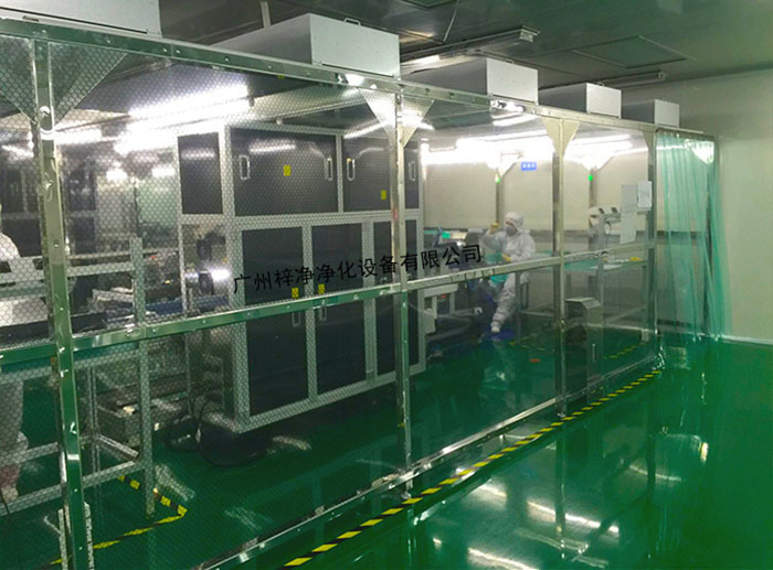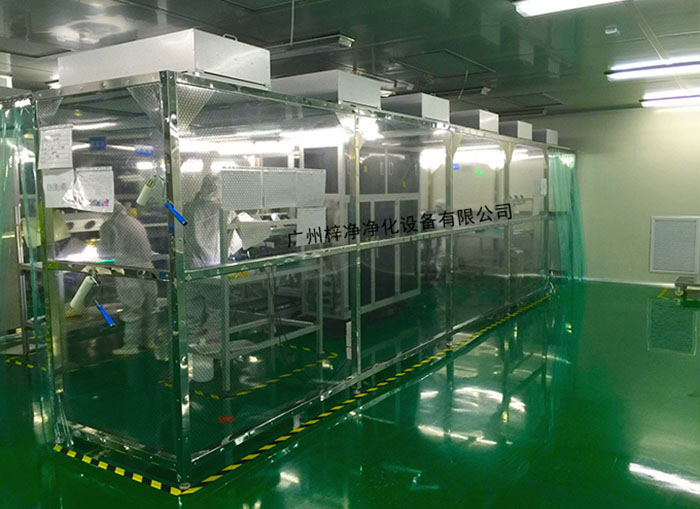 潔凈無塵棚特點風機從FFU頂部將空氣吸入,經初效過濾器,高效過濾器過濾,過濾后的潔凈空氣在整個出風面以0.45m/s±20%的風速勻速送出到無塵棚內。形成均流層,使潔凈空氣氣流呈垂直單向流,從而保證了工作區內所要求的潔凈度。潔凈無塵棚應用領域: